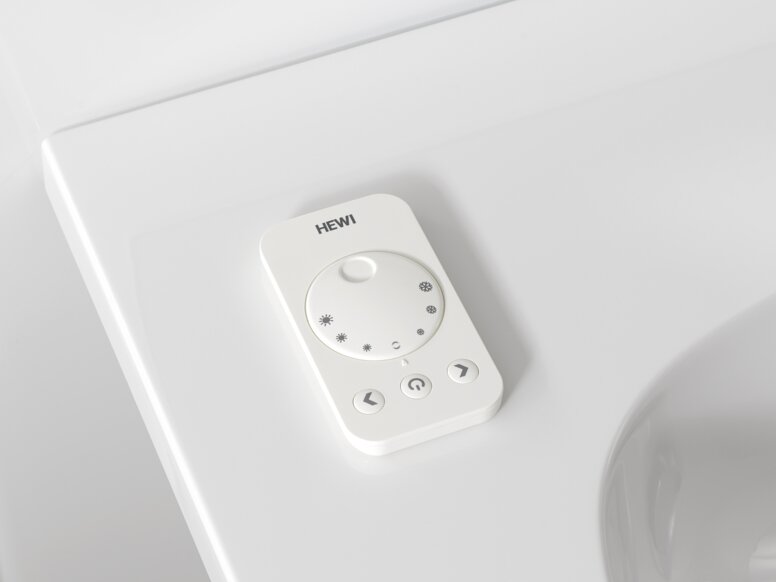 The advantages of such a washbasin are obvious: The individually adjustable height allows a variety of people with differing body heights to use the washbasin. The washbasin can be adjusted to an individual height by remote control within a few seconds, allowing even sitting people or people in wheelchairs to take care of themselves. The S 50 module from HEWI can be adjusted by 30 cm, for example. An advantage of the S 50 is that the entire module can be moved. The washbasin doesn't cover the mirror, which is available either unlit or with LED lighting. Accessible comfort is possible at the touch of a button: Both the WC and the washbasin module are driven by a motor that allows infinitely variable height adjustment. The washbasin module can support loads of up to 150 kg.