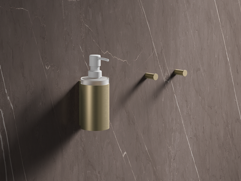Inserts made of frosted glass or high-quality polyamide in signal white, pure white, anthracite grey or black can be combined with soap dispensers or tumblers, for example.