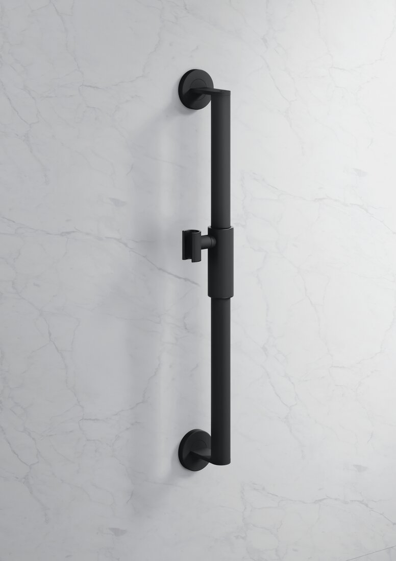 It is available in stainless steel, chrome, and powder-coated in white, black, and grey and is one of the accessible solutions of the System 900. It features simplified handling and is suitable for all people, especially for users with physical disabilities. Thanks to its magnetic function, it can be easily adjusted in height and does not require any push buttons or knobs. It also has a continuously rotatable cone holder. This means that it can be used completely without effort and with motor restrictions. Wet hands do not cause any problems because the novel magnetic principle has replaced the traditional clamping mechanism. This means that there are virtually no mechanical forces acting on the product. Wear and tear are thus reduced to a minimum. The shower rails, L-shaped support rails and shower handrails with the magnetic shower-head holder from System 900 are available in a diameter of either 25 mm or 32 mm.