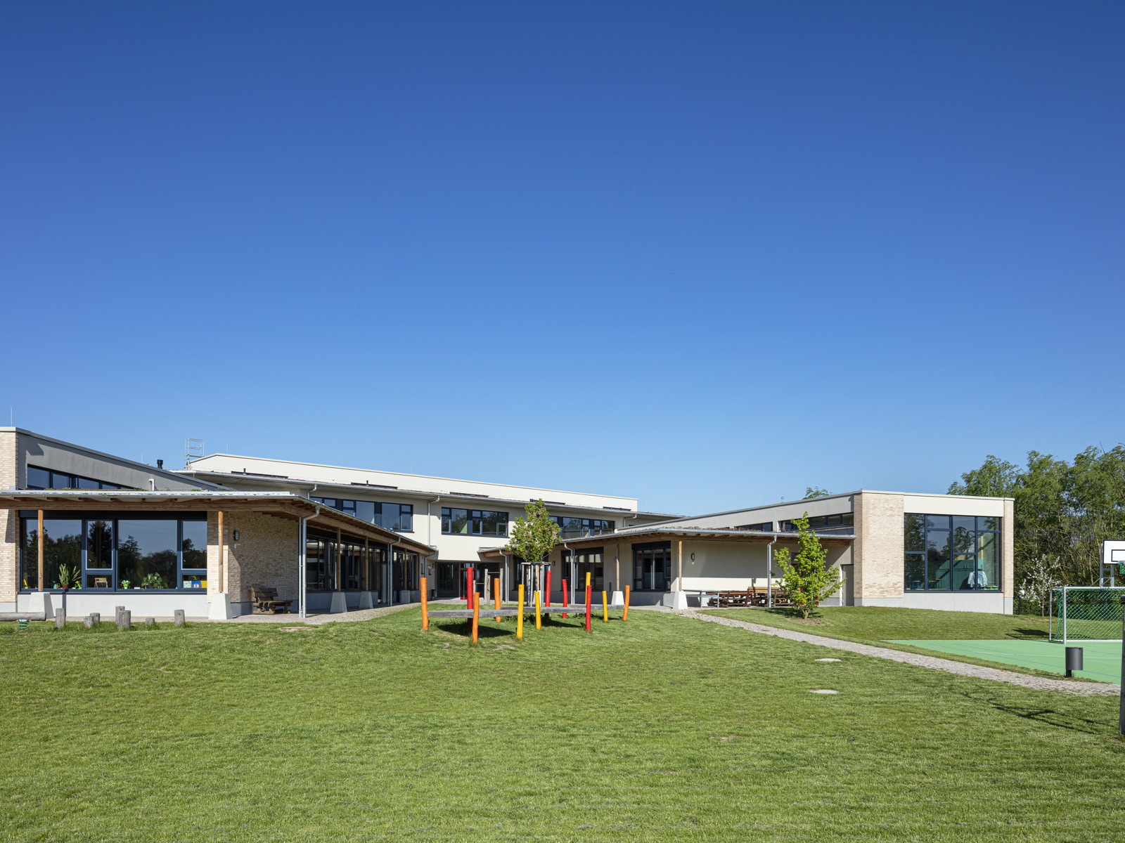 Lors de la planification et de la conception du nouveau bâtiment, les clients et les architectes se sont principalement attachés à soutenir les quelque 200 enfants et adolescents dans leur développement physique et moteur ainsi que dans leur apprentissage. Le résultat est un espace de vie scolaire qui soutient les enfants handicapés dans leur apprentissage mental et moteur.