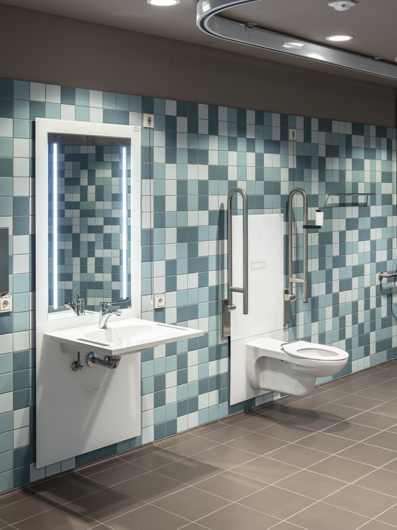 Des solutions sanitaires réglables en hauteur s'adaptent aux utilisateurs