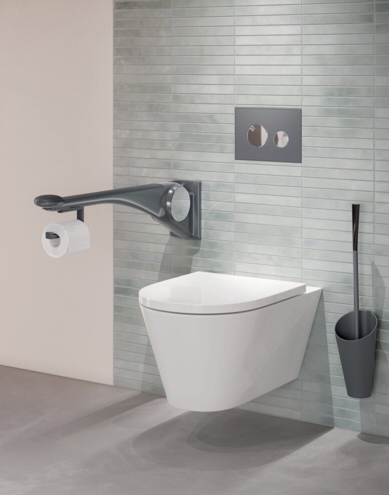 barres d’appui et de maintien doivent par exemple être facilement identifiables afin de garantir la sécurité des résidents. Les barres d’appui relevables de la série LifeSystem offrent ici une solution intelligente : elles sont disponibles en anthracite avec une zone de préhension blanche, ce qui crée des contrastes bien visibles. Elles aident les personnes avec des problèmes de vue à reconnaître plus facilement les barres et à les utiliser en toute sécurité.